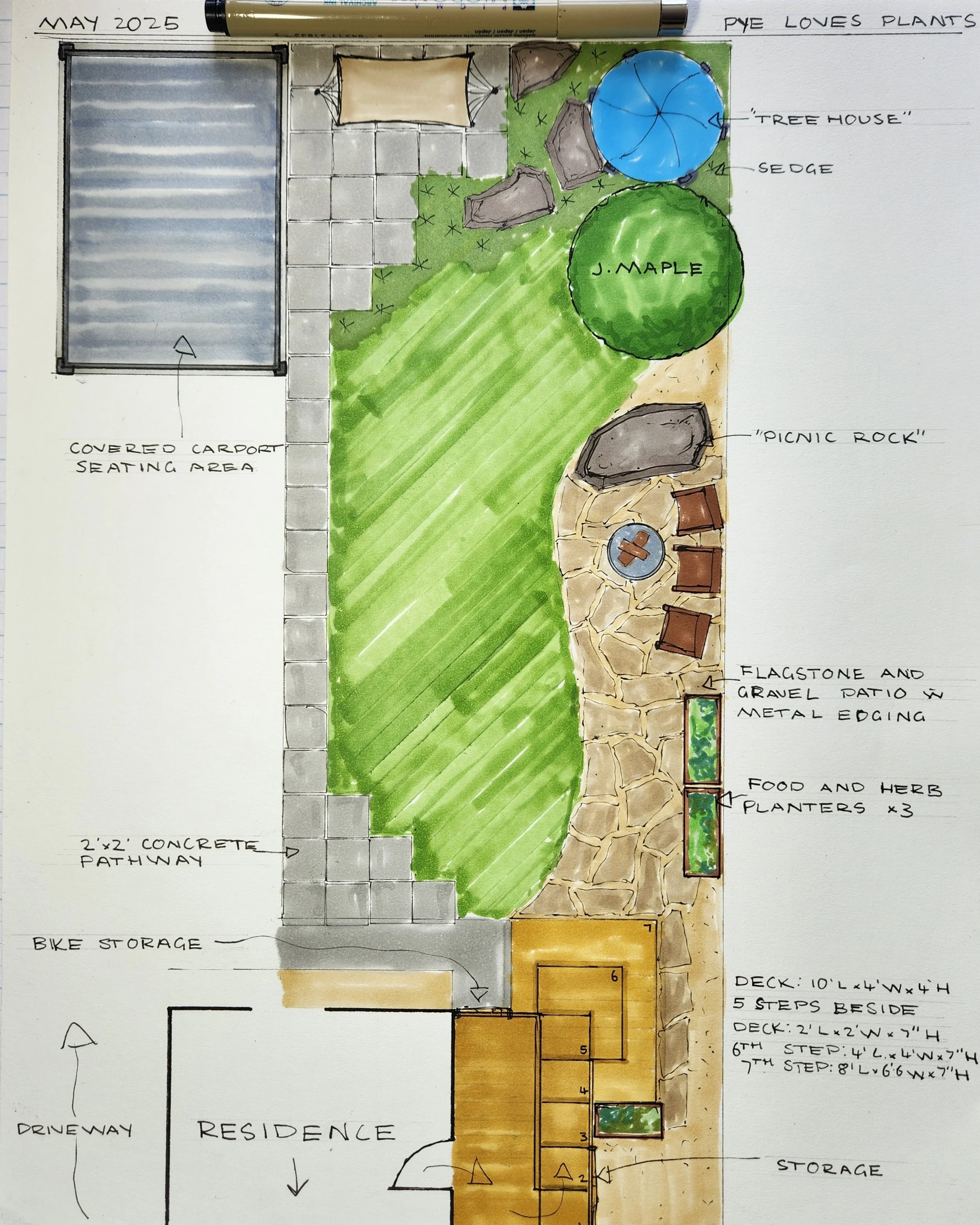 This service is for folks who want to work on optimizing their outdoor space and need help getting started. It's for those who want to create a workable plan and design concept they can chip away at over time. It’s typical for DIYers, and for those who might use a contractor for some elements of the design. After you complete the questionnaire below, we will have a consultation on-site, where I will spend a few hours working on a design concept with notes, plant and material suggestions, and a drawing (or 2) *Not always to scale.